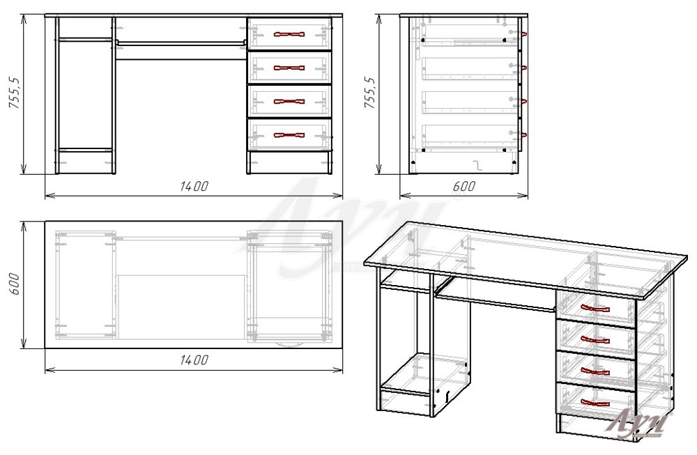 Комп'ютерний стіл «Велкомп» Яблуня Локарно+Венге