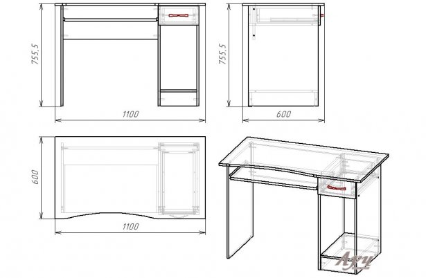 Даний комп'ютерний стіл призначений для установки як в офісі так і дома. Удобное розміщуються на столі канцелярське приладдя та комп'ютерна оргтехніка. Стол може мати правобічних і лівосторонніх виконання.