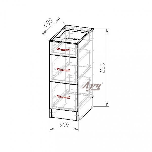Тумба з висувними ящиками кухні "Еко" НШ-30 Горіх